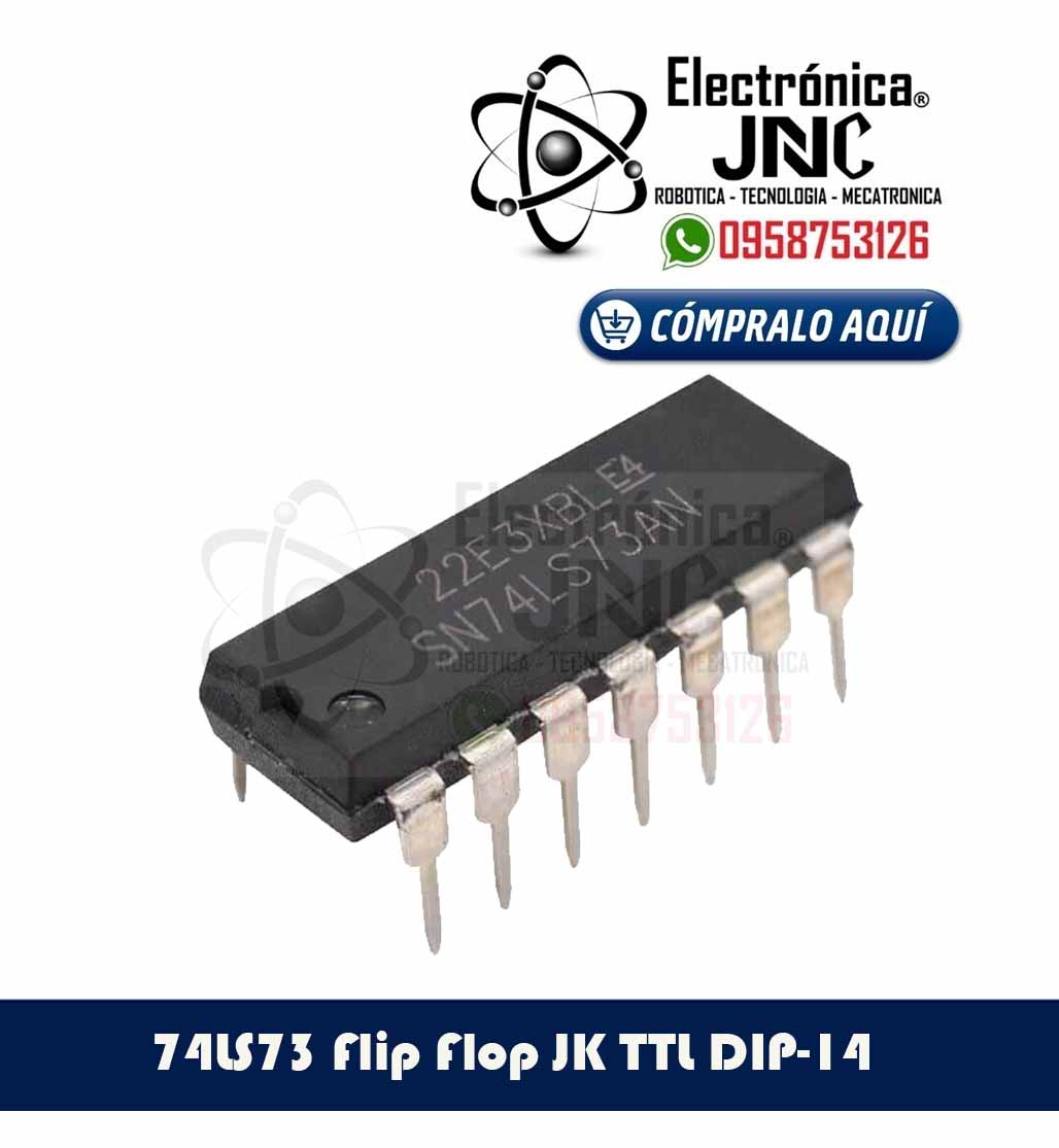 El 74LS73 Flip Flop JK es un tipo de circuito integrado que se utiliza para almacenar y cambiar el estado de una señal digital con tecnología LS y dos flip-flops J-K independientes; tiene una configuración de pines DIP de 14 pines, y utiliza tecnología TTL (Transistor-Transistor Logic) para una operación rápida y confiable. La alimentación de voltaje típica del 74LS73 es de 5 V.