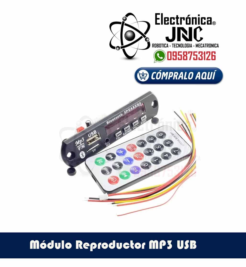 Reproductor de audio MP3 con comunicación Bluetooth. Soporta la lectura de música desde una unidad flash USB o tarjeta Micro SD directa, con radio FM, control remoto infrarrojo, entrada de audio externo, carga USB y pantalla LCD. Estos módulos son aptos para conectar a cualquier equipo amplificador de sonido.
