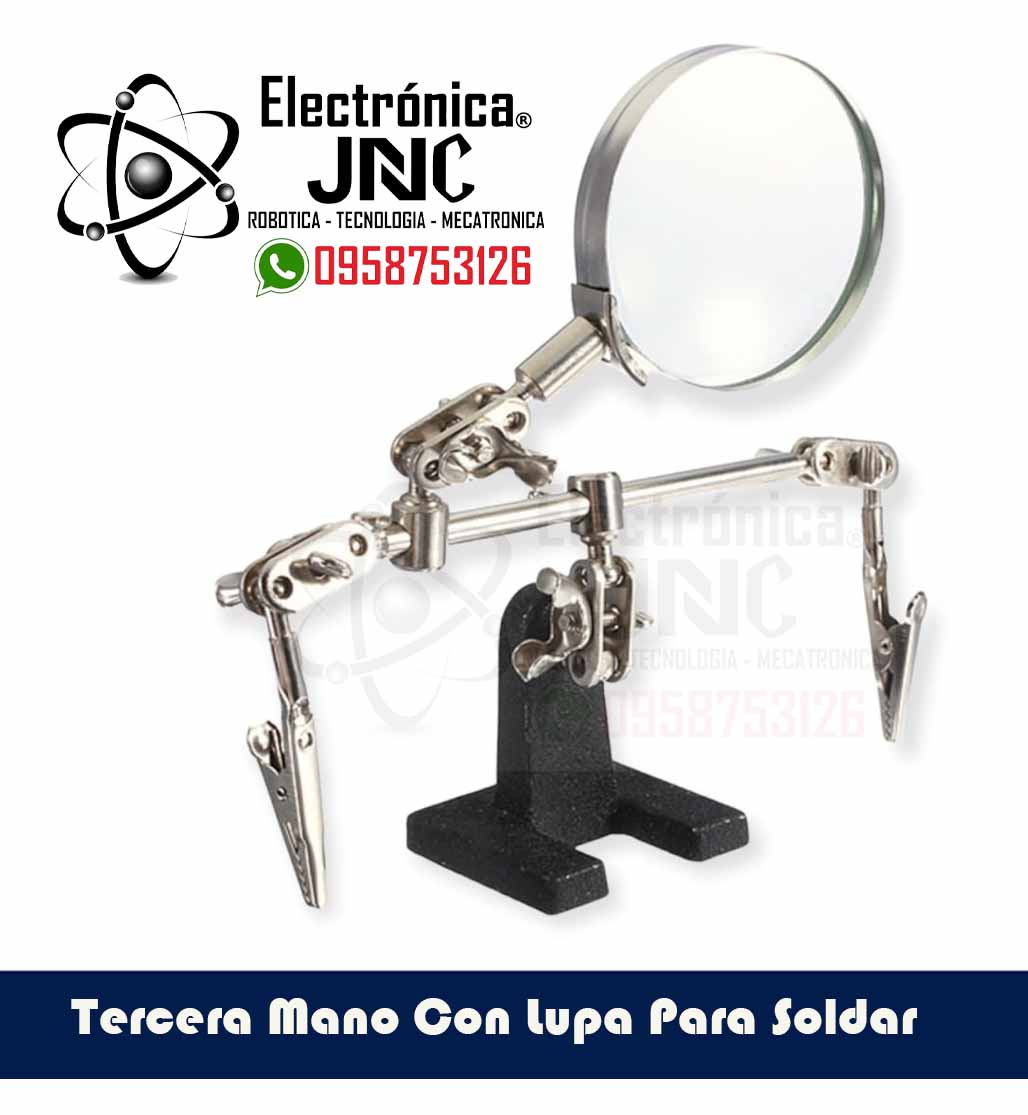 Esta es una herramienta ideal para soldar, la que cuenta con una lupa y pinzasย la cual es ideal para servir de apoyo en el trabajo sobre circuitos y placas PCB ya que estรก diseรฑada con 2 pinzas tipo caimรกn, una lupa que te permitirรก ver en tamaรฑo aumentado el รกrea de trabajo.